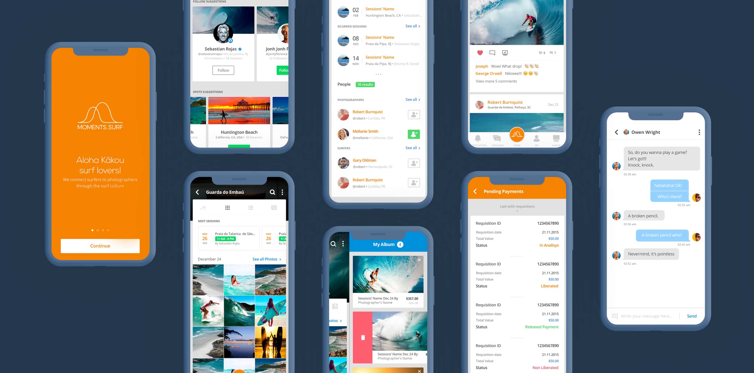 Moments.Surf é uma startup com o objetivo de unir surfistas a fotógrafos, através de um market place desenvolvido através de um app.