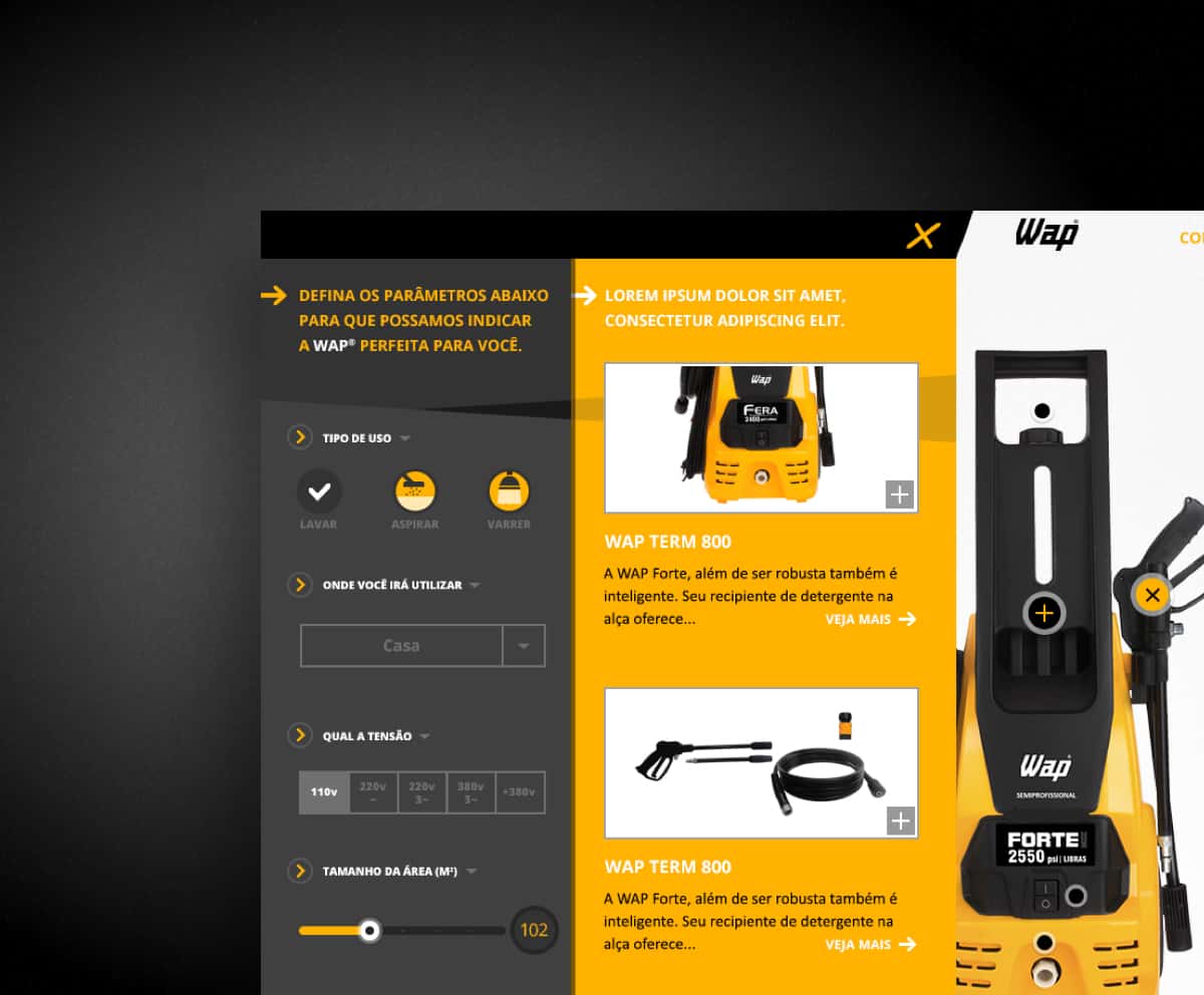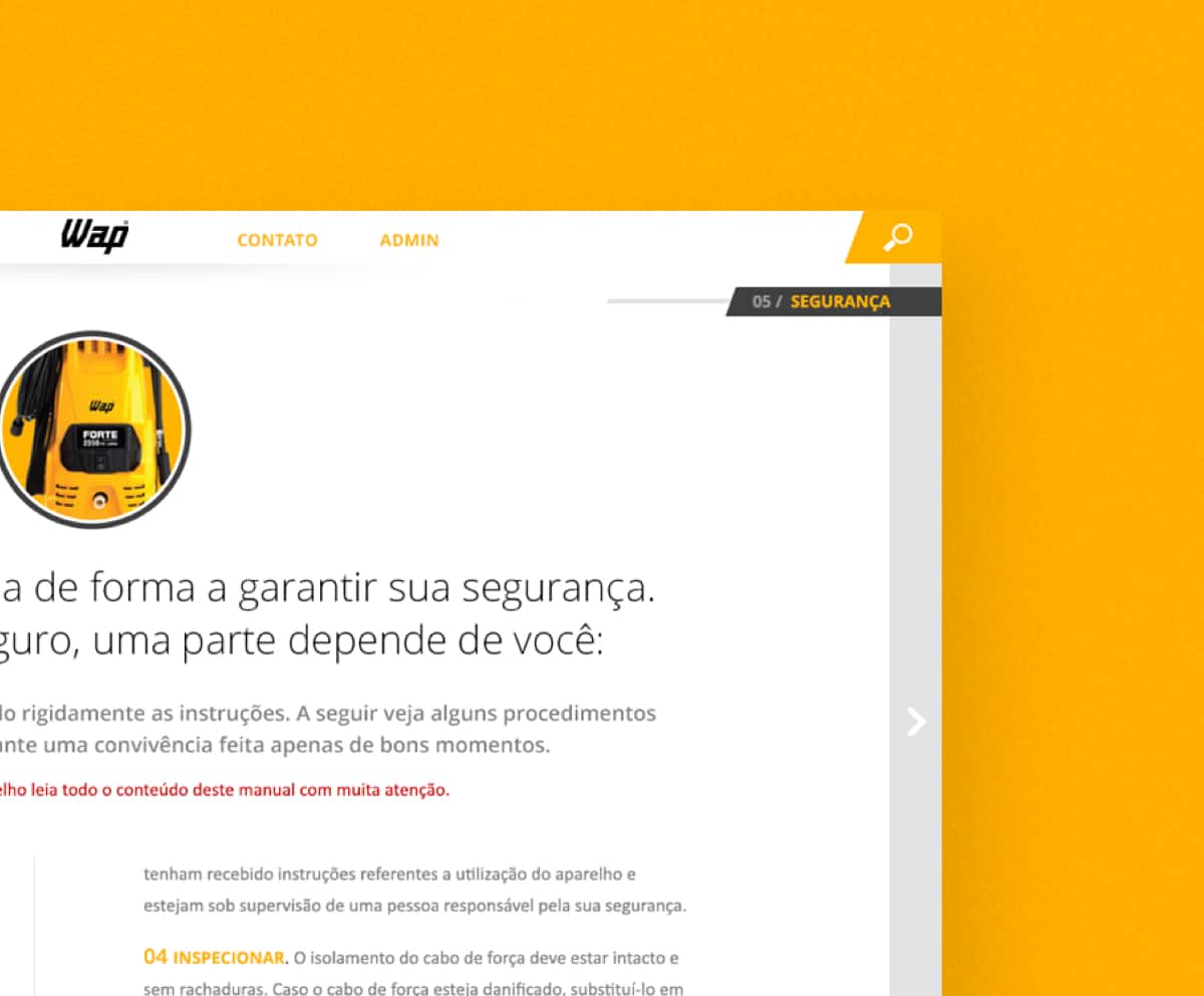 Criamos uma plataforma com todos os produtos da WAP®. Esse espaço contém as informações desses produtos, assim como seus manuais, além de uma ferramenta para escolha do produto mais adequado ao usuário segundo seu uso.